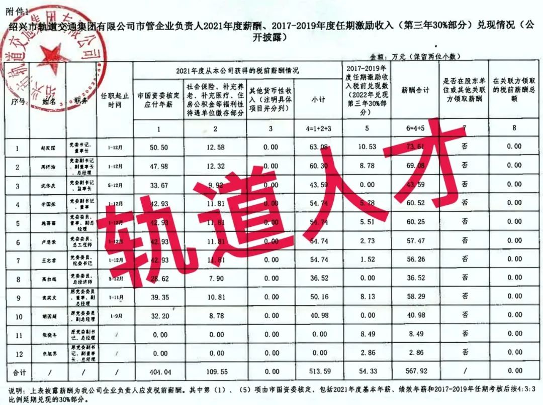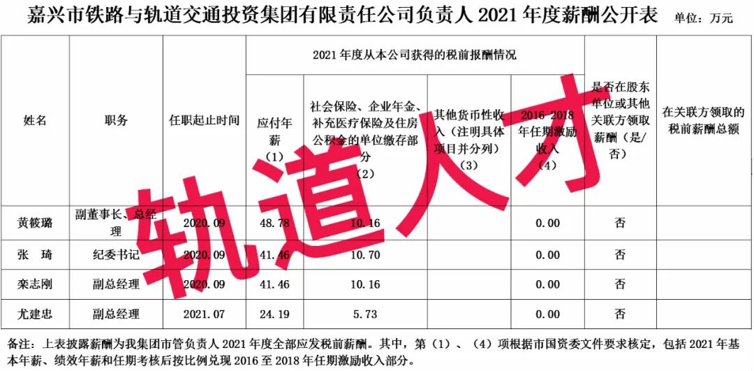 4、绍兴市轨道交通集团有限公司企业负责人2021年度薪酬
