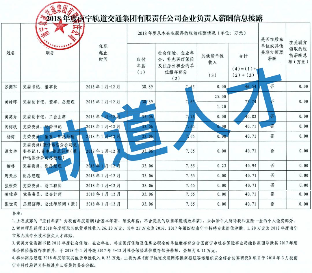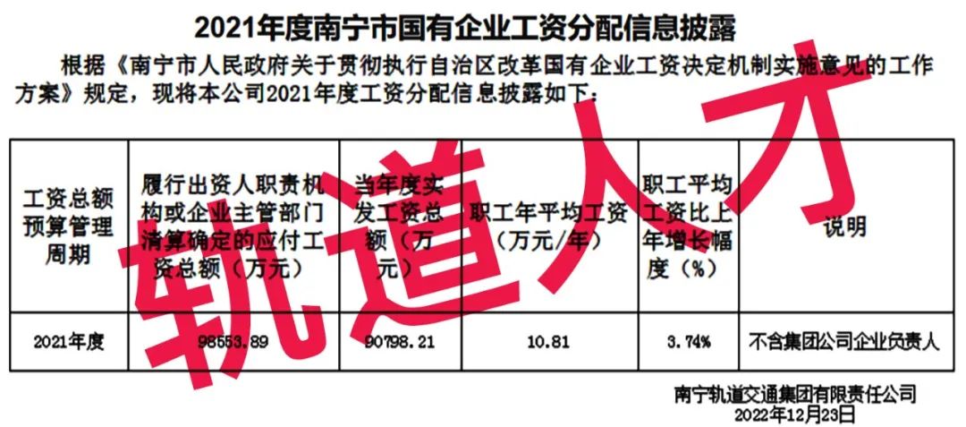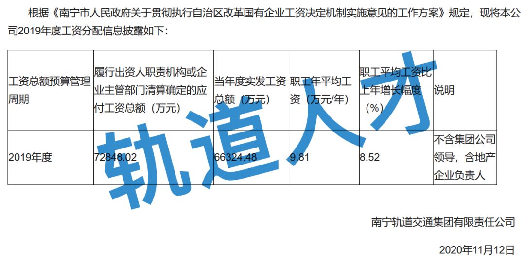 2018年度南宁轨道交通集团有限责任公司工资分配信息披露公告