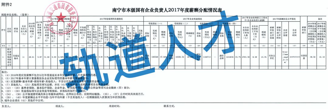 2017年度南宁轨道交通集团有限责任公司企业负责人薪酬信息披露