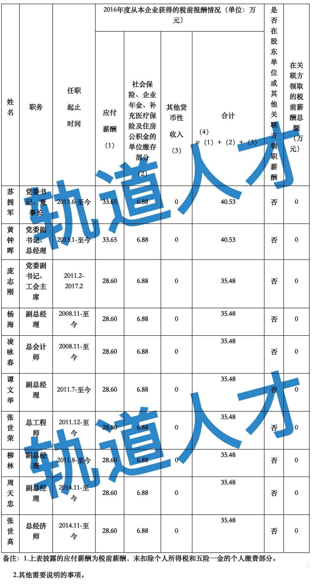 企业负责人薪酬信息披露
