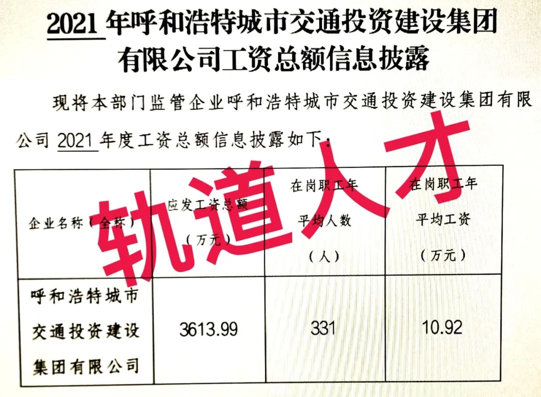 18、2021年呼和浩特城市交通投资建设集团有限公司工资总额信息披露