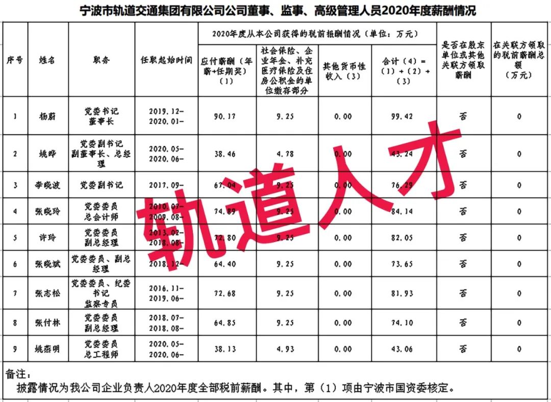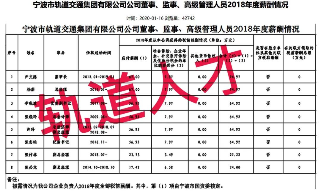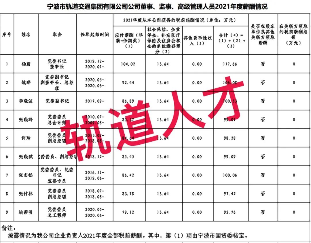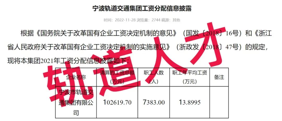 宁波轨道交通集团工资分配信息披露