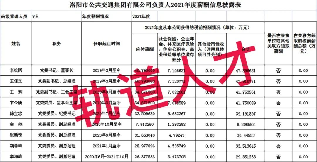 22、洛阳市公共交通集团有限公司负责人2021年度薪酬信息披露表