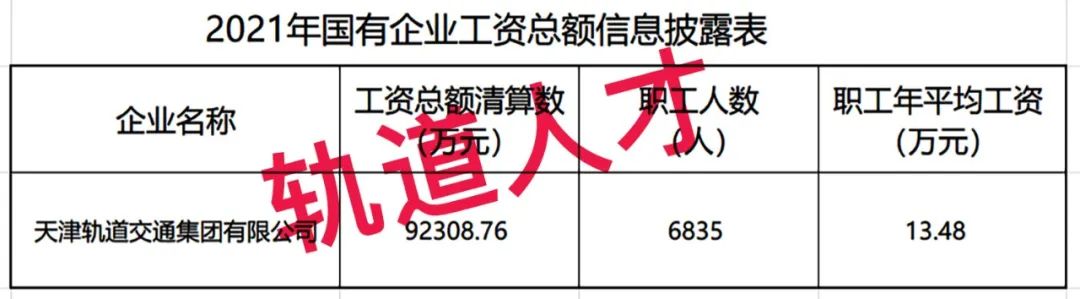 15、2021年天津轨道交通集团有限公司工资分配信息披露表