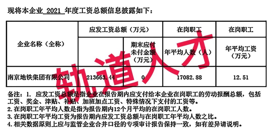 3、2021年南京地铁集团有限公司企业工资总额信息披露