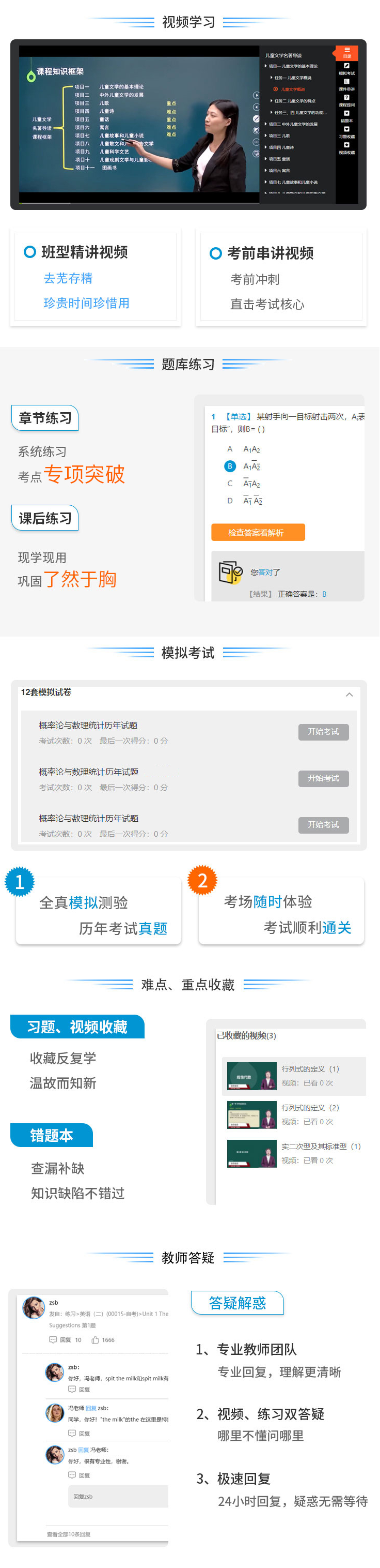 ✔教师答疑:专业教师团队,一对一答疑,老师发送学习通知,督促大家完成学习计划、刷题备考、根据学习情况通知报名考试。