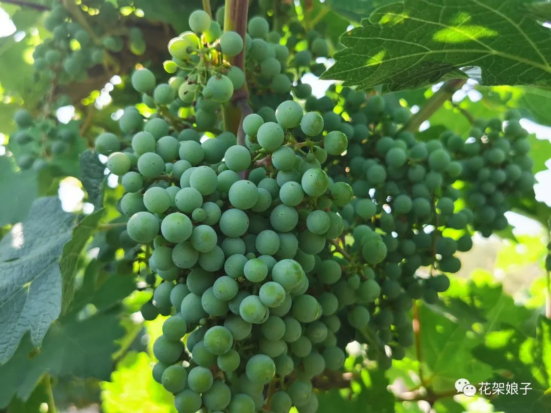 现在还不是葡萄的成熟季,葡萄还只有珍珠般大小,尝尝看,又涩又酸。