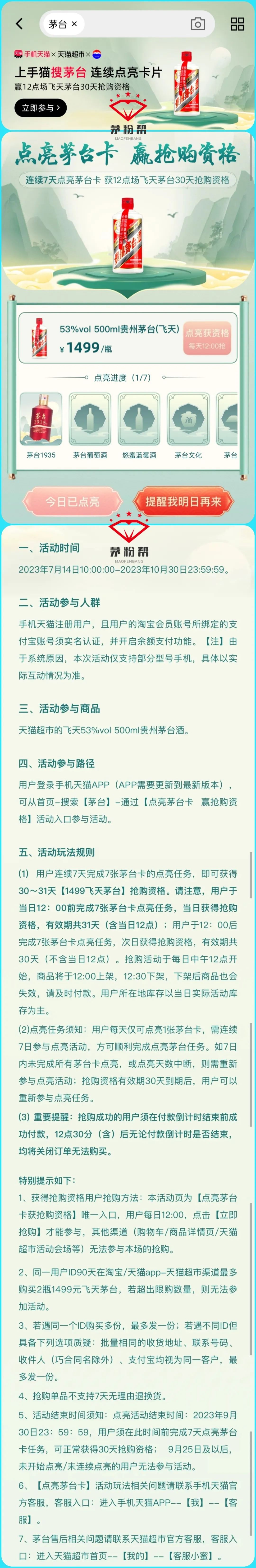 ①、扫码关注茅粉帮、每天更新撸茅线报及预约通道!