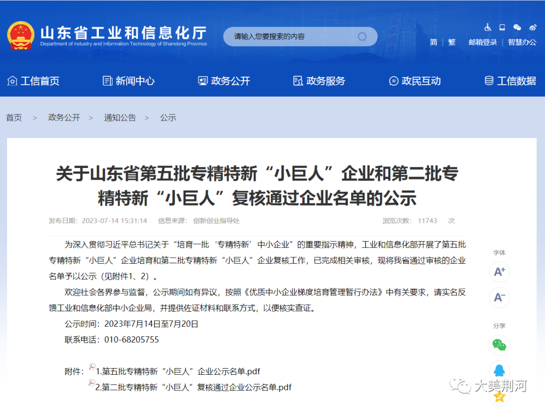 7月14日,山东省工业和信息化厅公示了第五批专精特新“小巨人”企业培育和第二批专精特新“小巨人”企业名单。威达重工、大汉智能科技荣获国家级专精特新“小巨人”企业称号,荆河街道“梅开二度”,实现了辖区专精特新“小巨人”企业零突破。