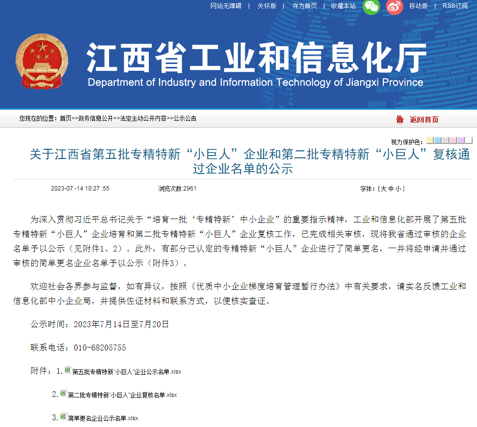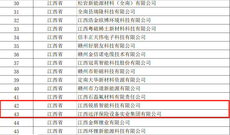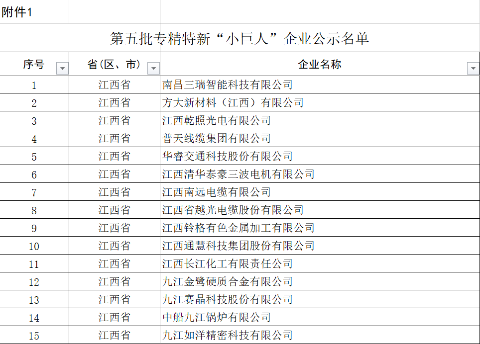 日前,工业和信息化部开展了第五批专精特新“小巨人”企业培育和第二批专精特新“小巨人”企业复核工作,第五批国家专精特新“小巨人”企业全省56家,其中樟树市2家,江西锐盾智能科技有限公司、江西远洋保险设备实业集团有限公司。