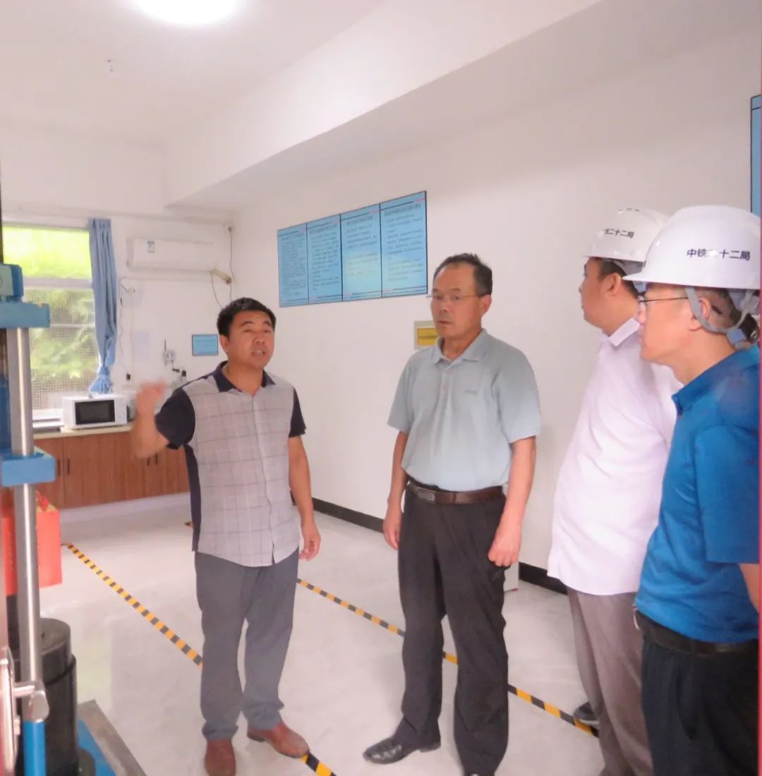 6月5日,集团公司副总经理、总工程师王爱国一行莅临杭温高铁项目4标中心试验室视察指导工作,杭温项目经理王志广、总工程师付宁陪同。