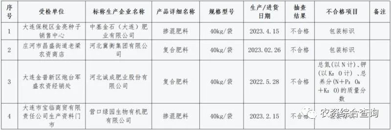 近期,大连市市场监督管理局组织开展了化肥等农资产品质量监督抽查,现将抽查情况通报如下: