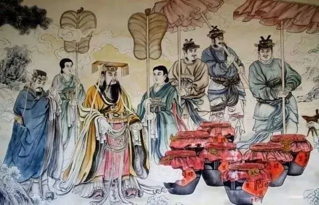 据传上古时期,黄帝发明了“酒泉之法”,黄帝命歧伯备齐五种以上优质熟谷,进行蒸煮,再经发酵酿造,并以陶器自然放置。多日后,黄帝令侍者抱着陶壶上来,黄帝用小樽啜饮了一口,只觉入口清冽,甘甜若醴,神清气爽。黄帝望着樽中色泽与水无异的酒说道:“此物,甘美可口,玉液琼浆,天功造物,神妙之水,即可当药用之,亦可当醪醴饮之”。此法传入民间,百姓自酿常饮,