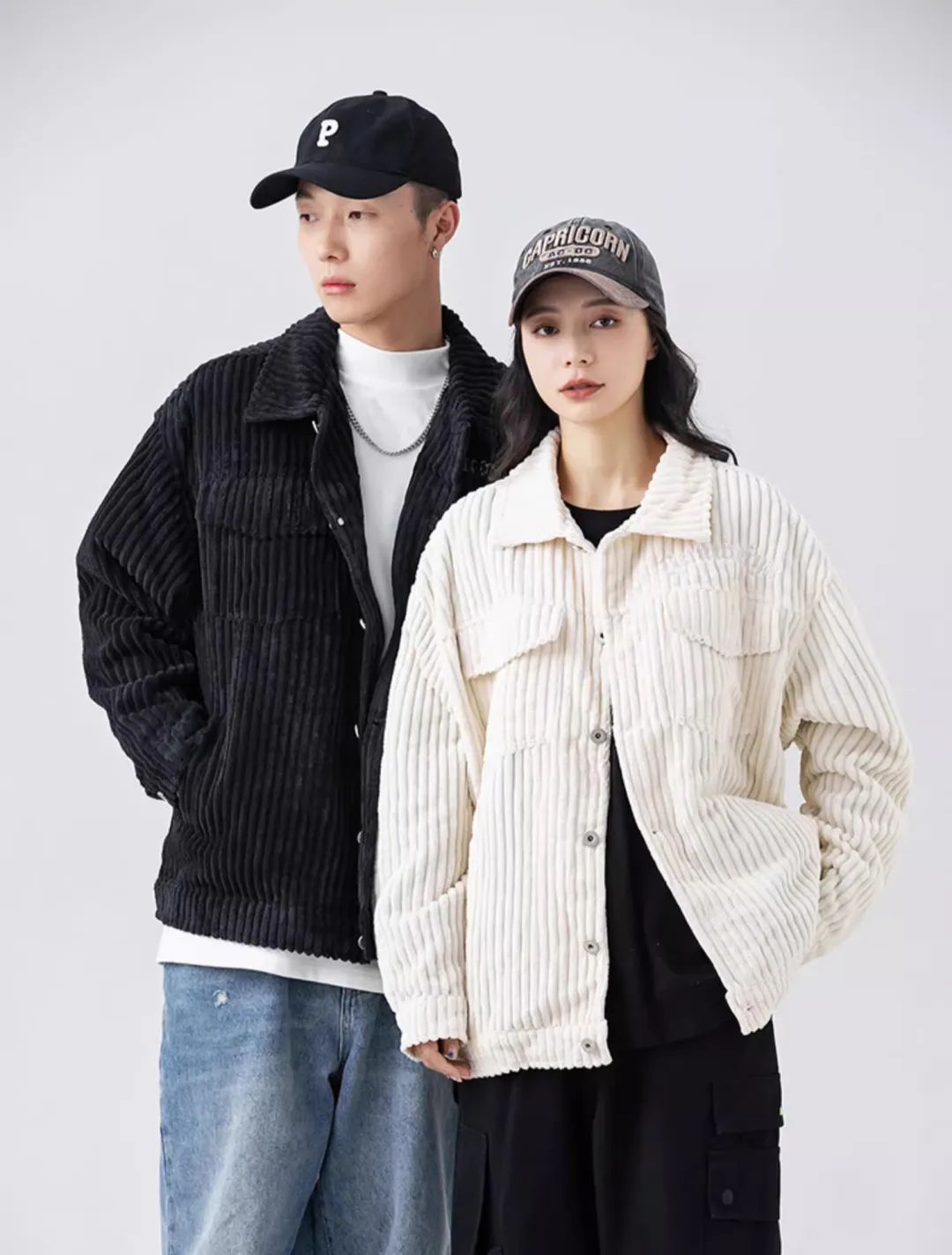 通过冷堆染色结合特殊整理工艺,让粗厚类面料也可以: