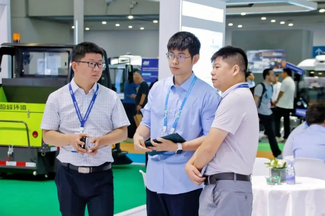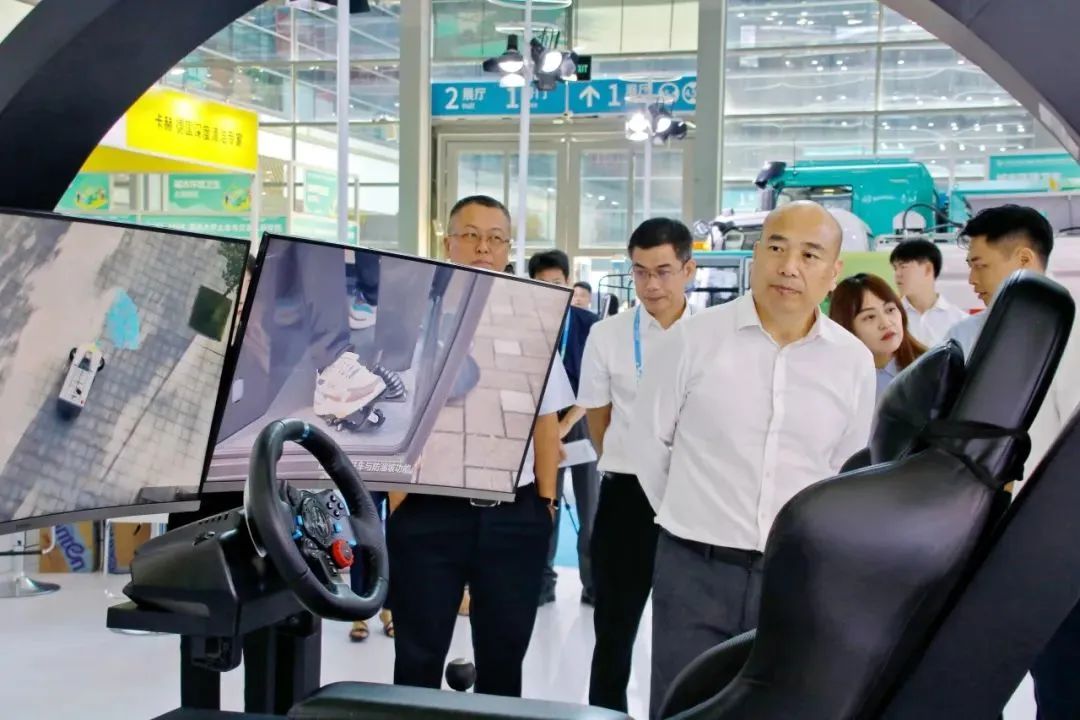 国家“十四五”规划提出,“加快建设数字经济、数字社会、数字政府,以数字化转型整体驱动生产方式、生活方式和治理方式变革”。广东省住房和城乡建设厅党组书记、厅长张勇,深圳市常委、市政府副市长黄敏一行莅临盈峰环境展位,盈峰环境副总裁兼城市服务事业部执行总裁邹淑峰进行讲解深圳市政协副主席、党组成员姜建军、城市管理和综合执法局党组书记、局长张国宏一行莅临盈峰环境展台智慧城市建设已成为“双碳”战略全面展开强有力的抓手,传统的环卫作业模式正在转型。展会现场,盈峰环境携多款融入绿色新能源动力、5G+、人工智能技术、机器视觉技术、全场景图像识别等关键技术的纯电动湿式扫路机、纯电整体湿式扫路机、纯电动深度洗扫车、高精度智慧清扫机器人等展示了盈峰环境于环卫领域的创新之举;5G远程驾驶舱以多视角、360°环视全景,低延时,支持5G/4G数传图传、支持超距远程驾驶的智慧魅力,吸引诸多业内人士驻足观看。占据展位“C位”的智能环卫机器人,是盈峰环境在环卫领域发展新能源化、小型化、智能化趋势下创新推出的行业首创系列装备产品,可广泛应用于城市辅道、次干道、广场、公园景区、产业园区、背街小巷、机场等众多场所。于夏顶炽阳、黄沙漫天等恶劣天气下,新能源环卫车辆作业从不停歇,噪音低了、排放少了、更智能了……这些往来于城市各个角落的“清道夫”,向观众直观地展示盈峰环境新能源环保装备作业清洗的“智慧”魅力。“数”造·城市新风尚