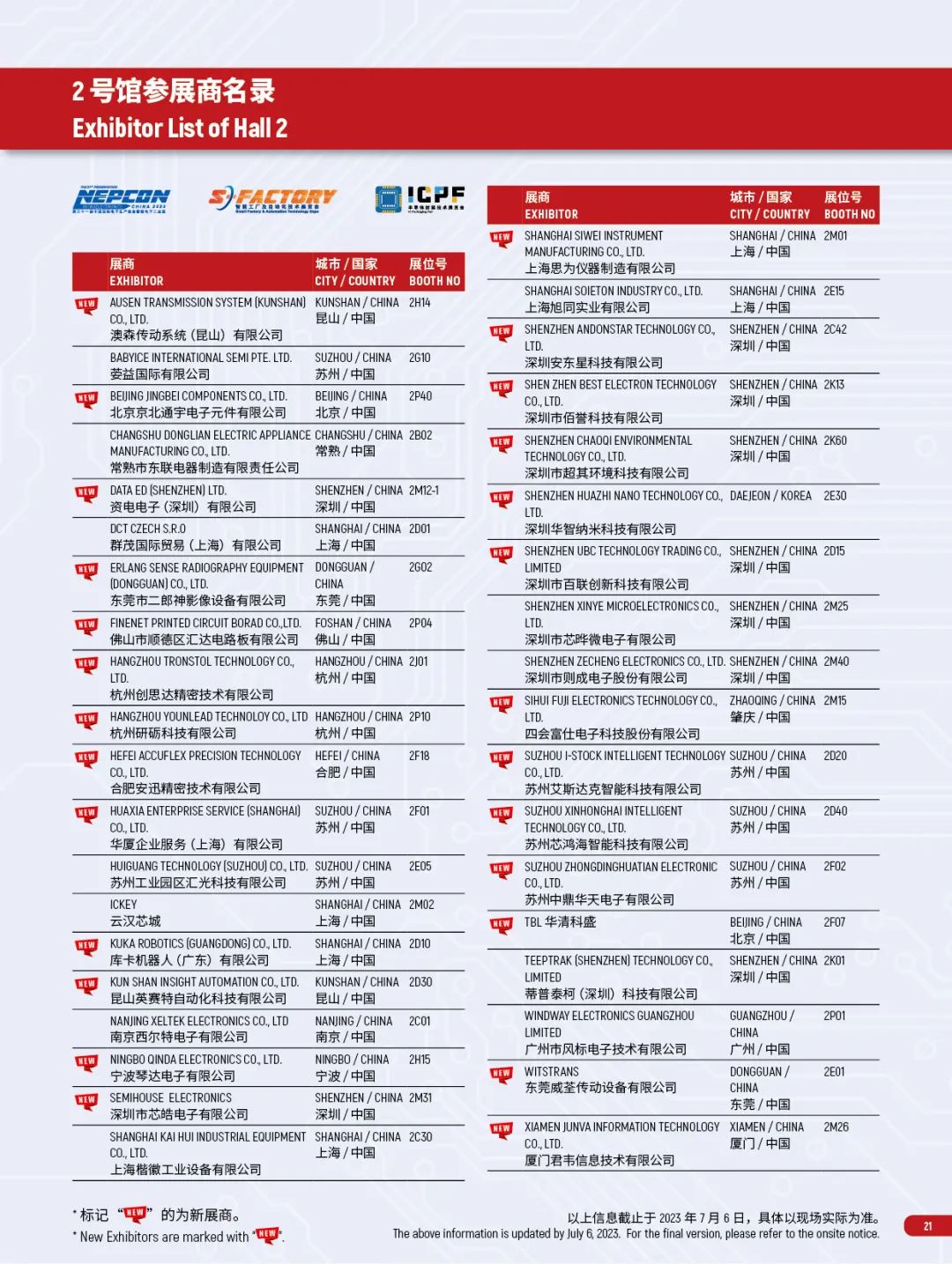 参展商名录