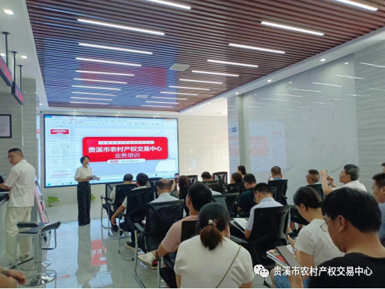 7月14日下午,贵溪市农村产权交易中心举办乡镇一级业务培训会,市农粮局分管领导主持会议并作政策解读。市直有关单位分管领导,各乡(镇、场和街道办事处)分管负责人及相关人员参加培训会。