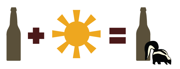 为什么精酿啤酒普遍选用棕色瓶子而不是大绿棒子?因为光照是啤酒第一杀手,很多你难以下咽的尿啤味、苦涩味就是光线导致的。这个学名叫做臭鼬味(Skunky),买对了酒你就不用去动物园闻了。暴露在强光下只需要几分钟就能达到这个效果了!