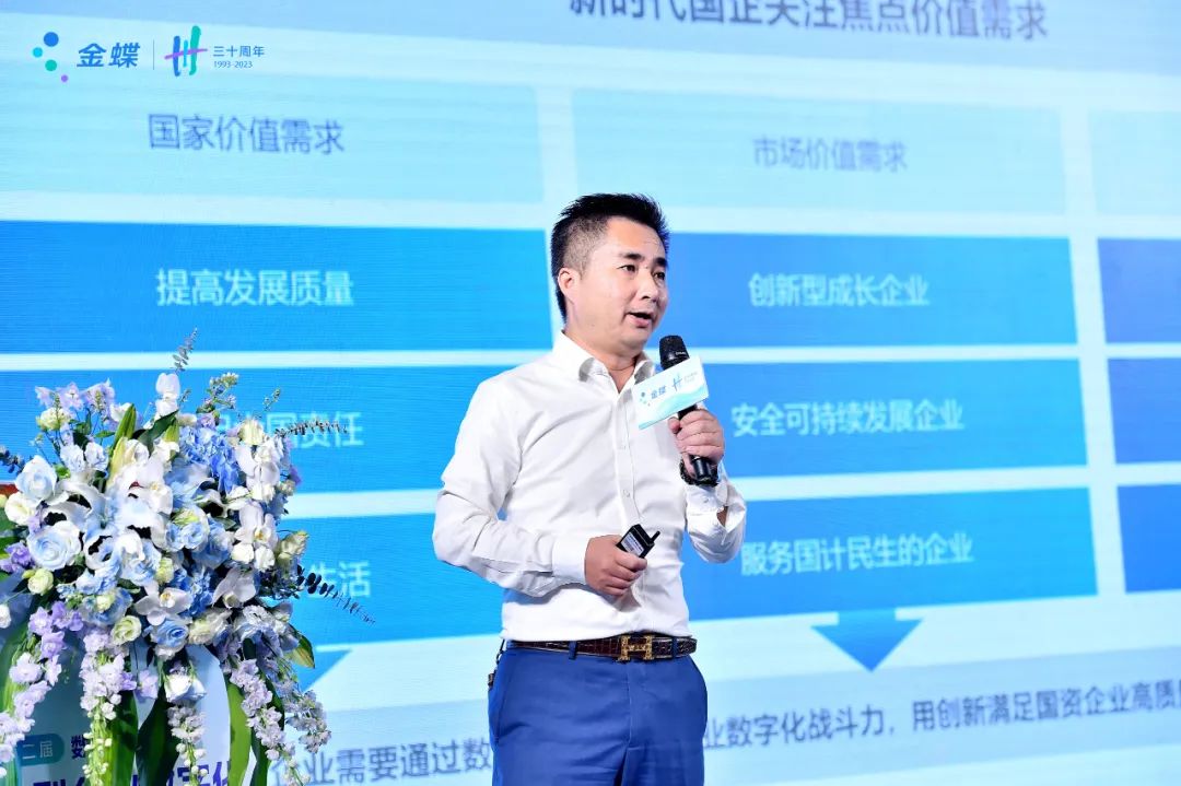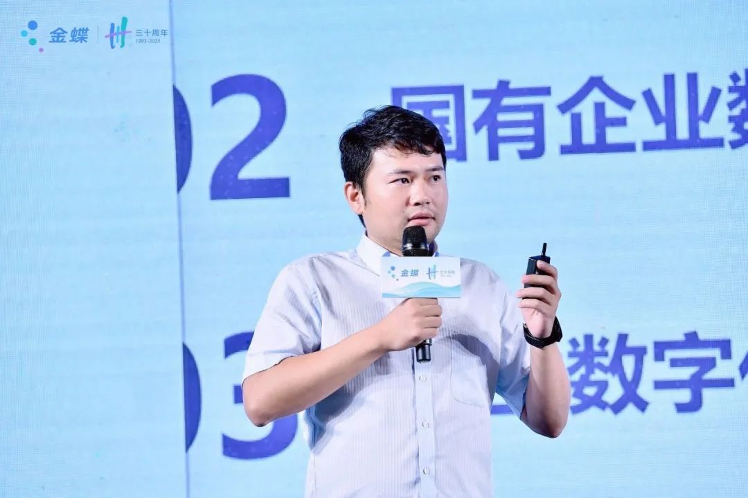 金蝶中国大客户国资业务经营部总经理孙洪表示,数字中国建设不断加速,国资企业在过程中扮演着“顶梁柱”“压舱石”的角色,需要利用数字化为其提供核心动能。他还从国企数字化转型思想和方法、数字化转型模式和要素及相关案例着手,全方位解读国有企业数字化转型关键要素与方法论。