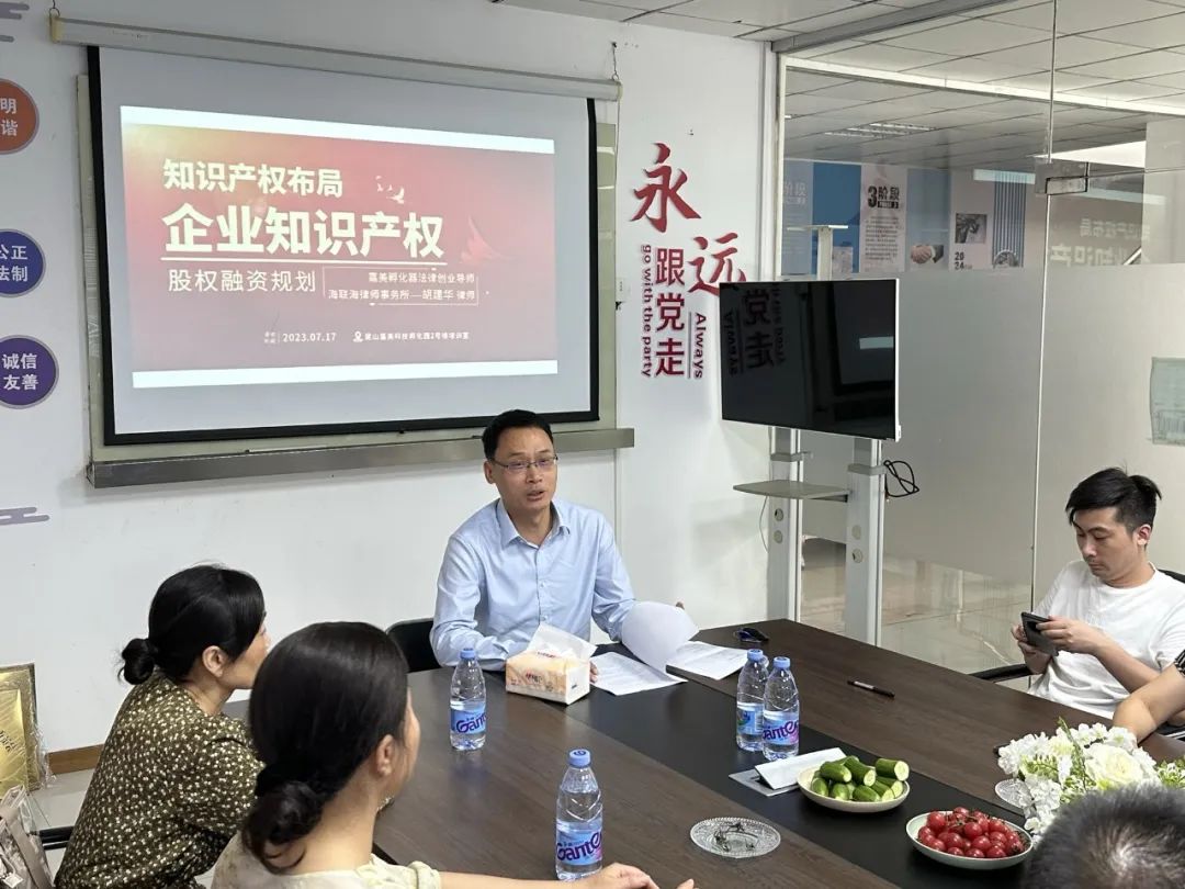 2023年7月17日下午1点,在嘉美科技园会议室举行了关于“知识产权布局&企业知识产权、股权融资筹划”相关内容的活动,由嘉美孵化器法律创业导师—海联海律师事务所胡律师、上海旭新专利代理事务所贺永兴总经理为园区举行宣讲活动内容、昆山邮储银行北门路支行介绍相关个人经营贷及企业经营贷的产品。