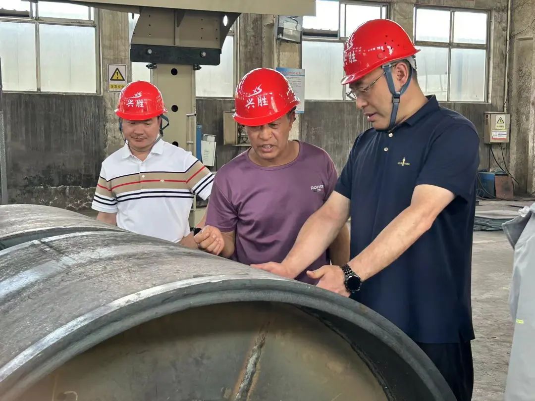 首先与兴盛有限公司管理人员展开座谈,听取该公司各项目负责人汇报设备到货时间、生产进度等情况,随后对该公司生产车间进行实地考察,针对设备生产情况、供货时间、安装进度以及到货后培训等各个环节提出要求。