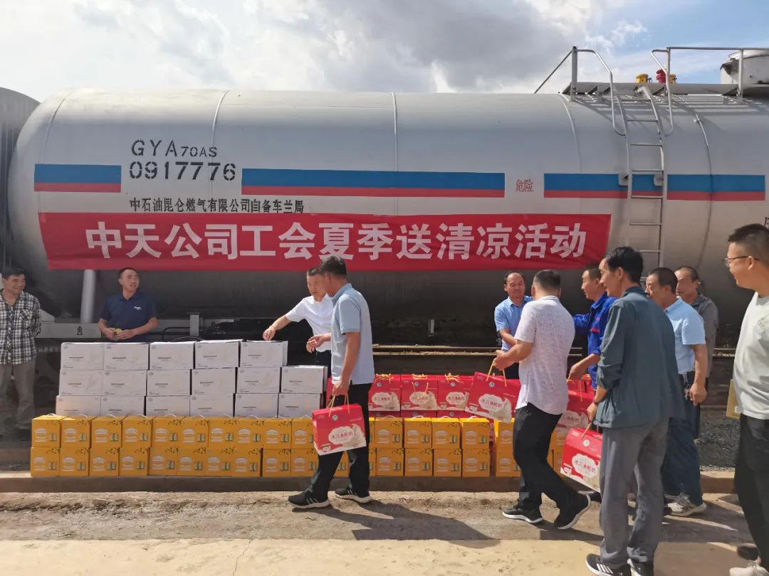 “送清凉”慰问活动,公司领导带领相关工作人员,向坚守一线的广大职工送去酸奶、饮料等防暑饮品,嘱咐大家要合理安排工作时间和任务量,注意高温天气防暑降温