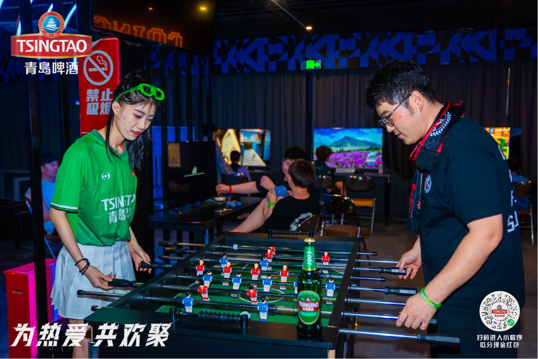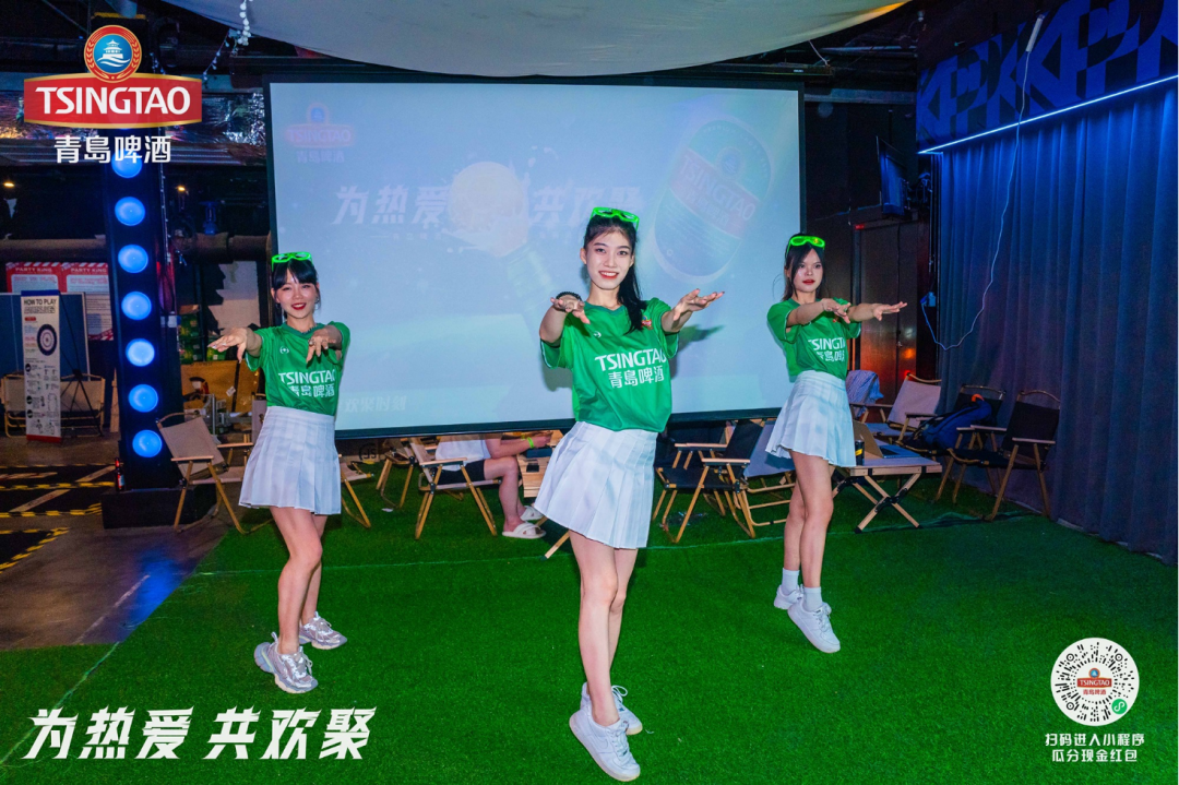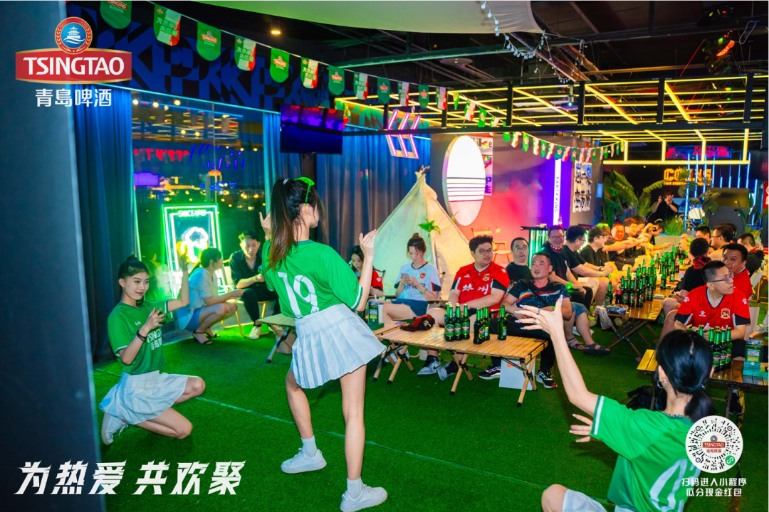 青岛啤酒,精彩的演艺,给你一个沉浸式的观赛体验,青岛啤酒的观赛第二现场别有一番风味!