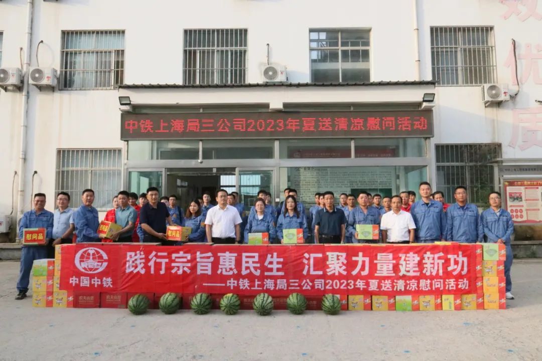 7月14日,公司总经理、党委副书记万兴权到烟台区域项目开展“夏送清凉”慰问活动,公司副总经理、总工程师胡松涛,公司副总经理吴军等陪同。万兴权一行为烟台区域项目经理部一线员工送去了凉茶、西瓜、矿泉水等防暑降温慰问品,向鏖战在高温下的一线建设者表示亲切问候。(王娟君)
