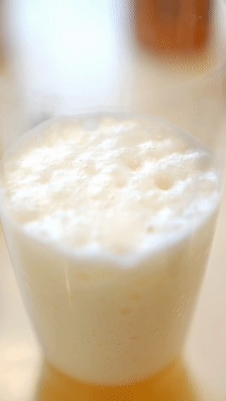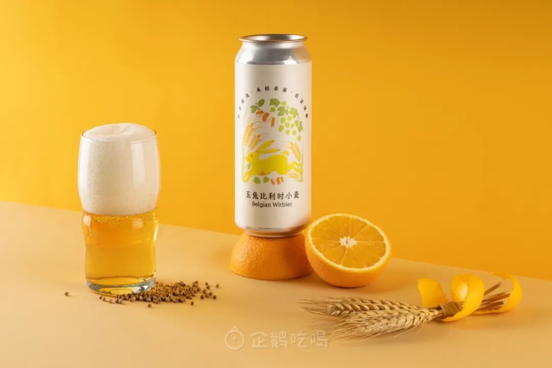 即使是精酿酒吧、居酒屋从酒头打出来的生啤,虽然未杀菌,但其实也不算完全的鲜啤,因为很多生啤是离心过滤掉酵母的,酿造完也会在冷库里待上一阵子。而我们这款玉兔啤酒,是:刚酿好、不杀菌、不稀释、不过滤,连酵母都保留的鲜啤原浆(我们对比了过滤酵母vs不过滤酵母两个版本,还是不过滤的口感更饱满更有活力!)售卖方式上,也完全打破了传统的啤酒销售方式:从酒厂直出,发文后再罐装,最大程度保证新鲜。简单介绍一下,这款啤酒的类型叫做“比利时小麦啤酒”,大家估计都喝过。很多德国叫不出名字但是看着眼熟的超市进口啤酒,以及著名的福X白,都是这个风格。它的特点是,除了最基础的大麦小麦,还会加入橙皮、芫荽籽一起发酵,一抹明亮清爽的果酸,非常适合闷热夏天,同时果香与绵密泡沫,新手入坑也毫无门槛。这里就要说说,这款啤酒与一般小麦口感上的第一个明显差异:泡沫,细密仿佛云朵般的泡沫!