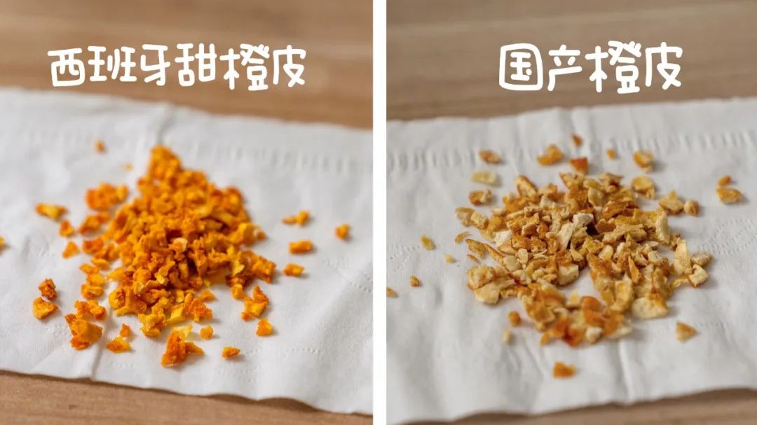 对啤酒来说,泡沫是极其重要的一个指标——气泡多还是少,细腻还是粗糙,对整体口感影响极大。如果仔细说泡沫究竟怎么形成的,怎么变得更绵密,可能就得用上写论文的架势了。我们就说重点:在比利时小麦这个啤酒品类里面,用更高的小麦比例,会让它的泡沫更加顺滑细腻。有些口粮啤酒味了节约成本,会用葡萄糖浆替代部分麦芽,降低成本,泡消失得比爱情还快。难喝也不至于,但是没有泡沫,一杯啤酒的口感立刻感觉“平(Flat)”。所以我们这款,首先是全麦配方,不用糖浆偷懒,这是我们的门槛。相比普通的全麦啤酒配方,我们的小麦比例更高(大麦1:小麦1.4)。由于小麦蛋白质含量比大麦高,因此酒液里的气泡也就更绵密,持久不散。比利时小麦一定要加的橙皮,我们也选了更好的西班牙进口甜橙皮,不加糖也有蜂蜜般的甜香,是这款啤酒甜橙果汁般风味的灵魂。国内很多风味啤酒,用的是多是加工橙皮(普通橙皮不够甜,所以会加糖制成),大家可以对比看下:颜色和香气都完全不一样!!毕竟价格差20倍左右。也正因为原料够好,所以无需加果汁加糖,只有麦芽、橙皮、芫荽籽最基本的干净原料,也能做出饱满如甜橙小麦汁般的风味。你有没有发现,很多啤酒开瓶后放一会儿会风味锐减,剩下苦度更加突出?
