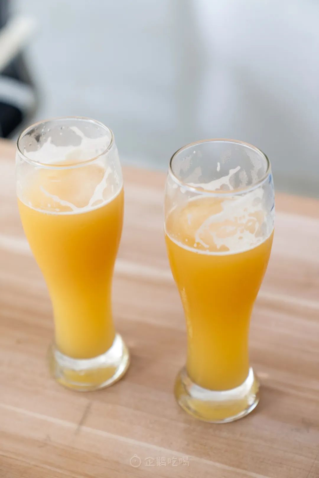 喝起来会无限接近我们在酒厂喝到的风味:仿佛香蕉甜橙小麦果汁,是富有生命力的活泼、饱满且多汁!
