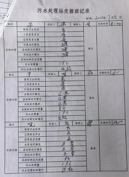 (八)各企业必须建立完善废水的运行台账,指定一名管理人员专责环保方面的工作,建立环保专档。运行台账由企业制作,台账必须反映污染物产生工序的运行时间、污染治理设施的运行时间、维修保养时间、投药量等情况,并与在线监控数据每月归入环保专档。