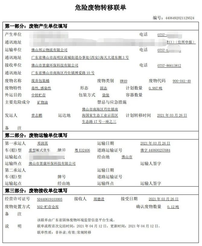 (七)生产过程中和废水处理产生的废渣等必须按照相应废物处置要求存放,必须委托有资质的相应废物处理单位集中处置,落实废物转移联单和台账管理,避免造成二次污染。