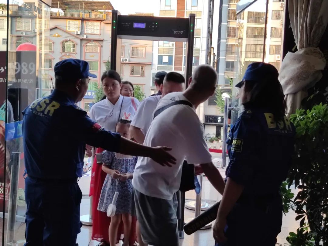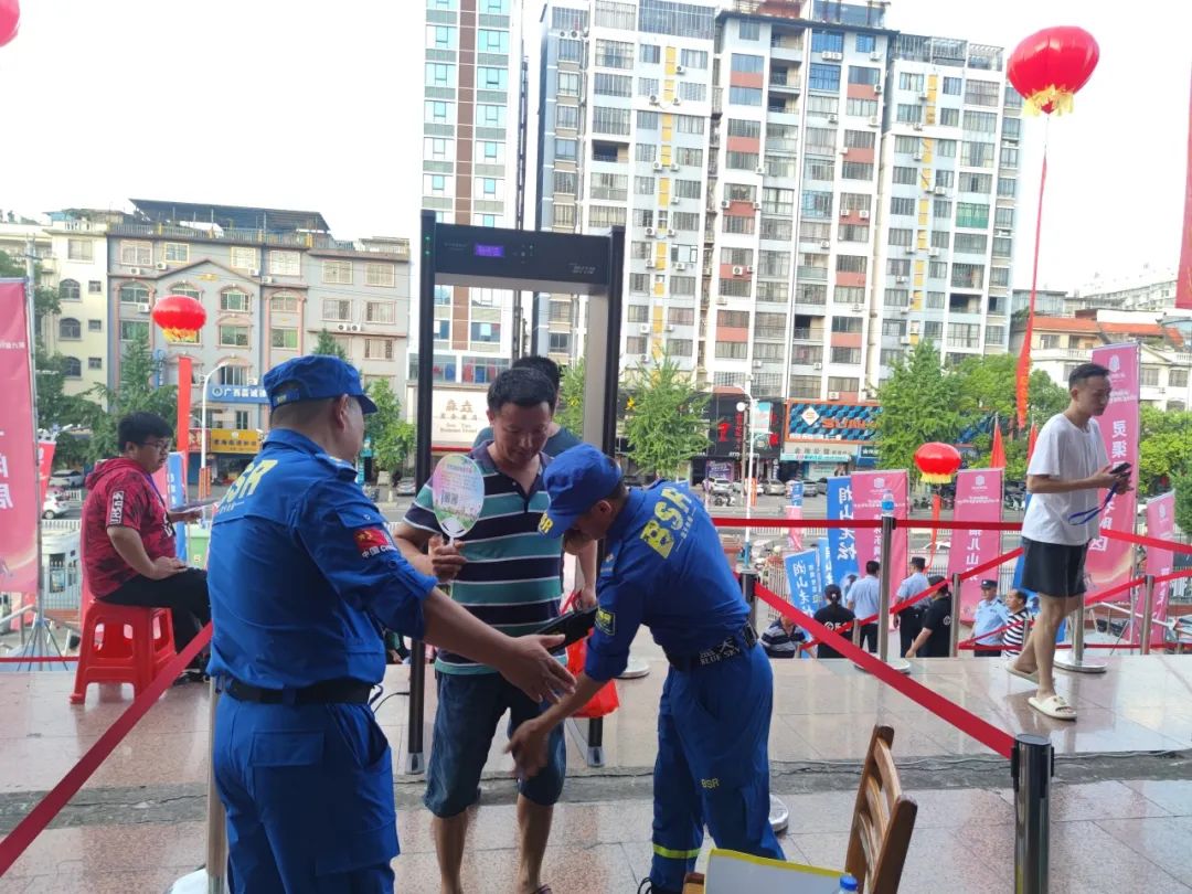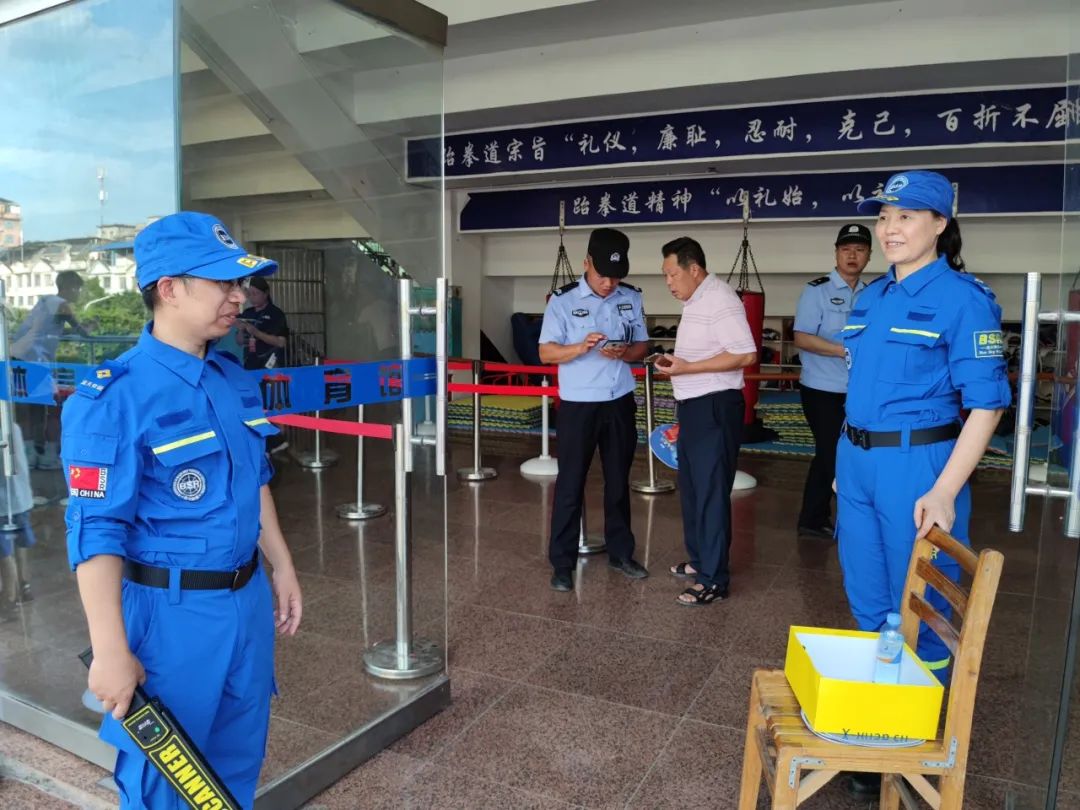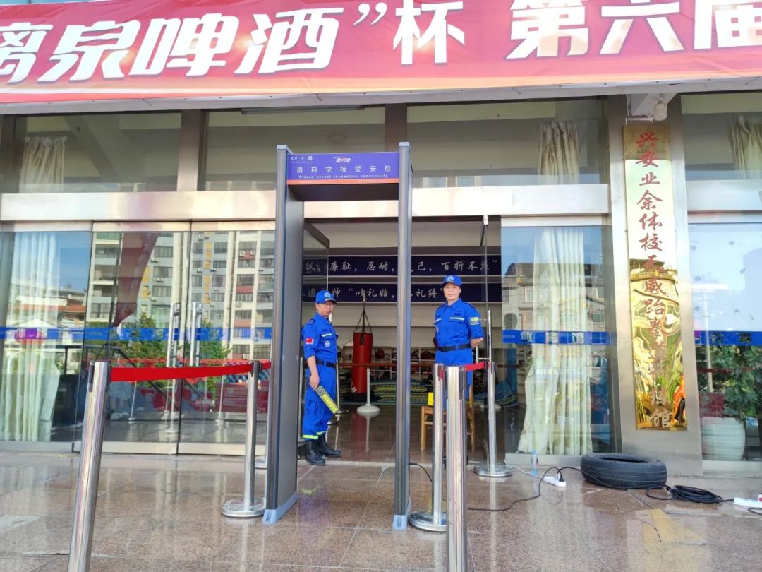 赛前,6名队友分组组织观众有序入场,对观众进行违禁物品扫描,确定未携带禁止携带入场的物品后予以放行,并指引观众到指定位置就坐。