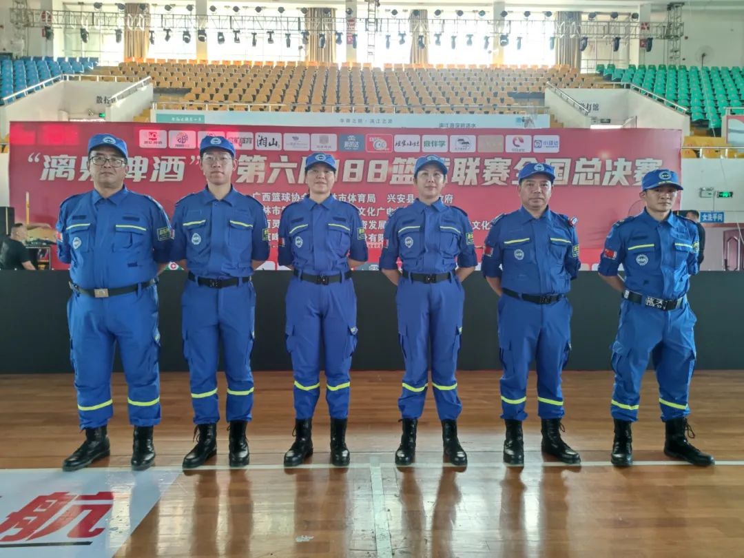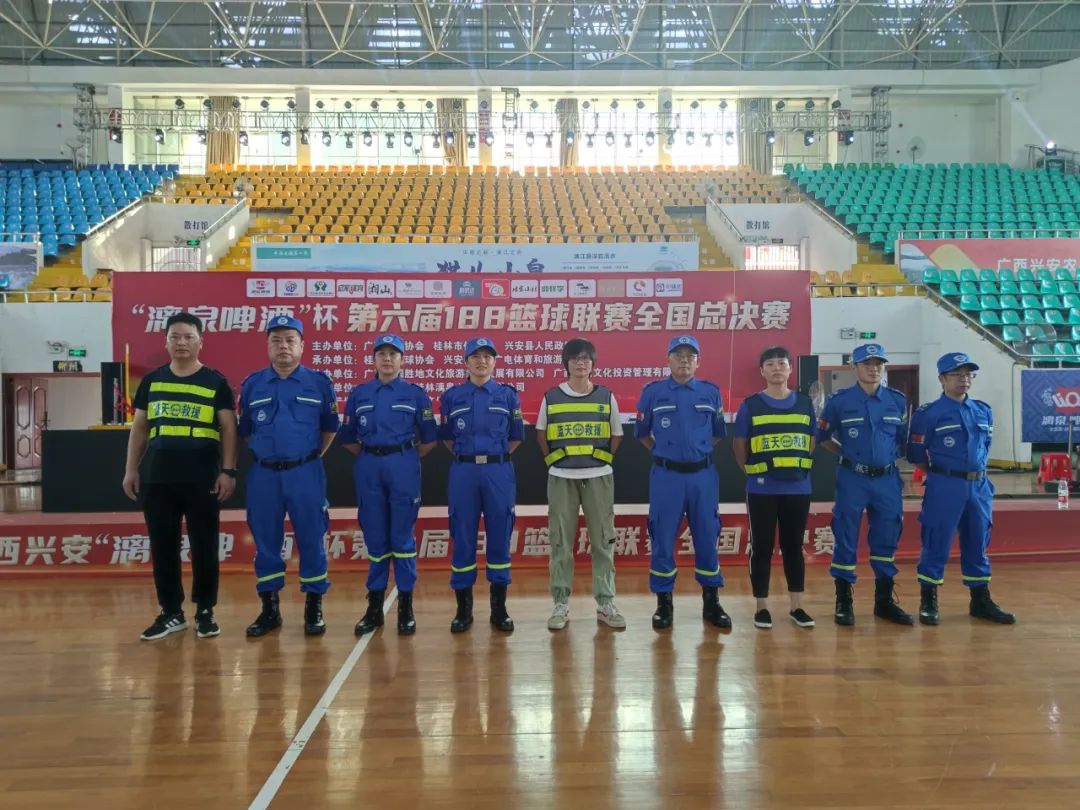 7月11日,“漓泉啤酒杯”第六届188篮球联赛全国总决赛在兴安县体育馆拉开帷幕,此次赛程共5天。为确保赛事安全有序进行,兴安县广电体育和旅游局特别邀请兴安县蓝天救援队为本次联赛做安全保障。