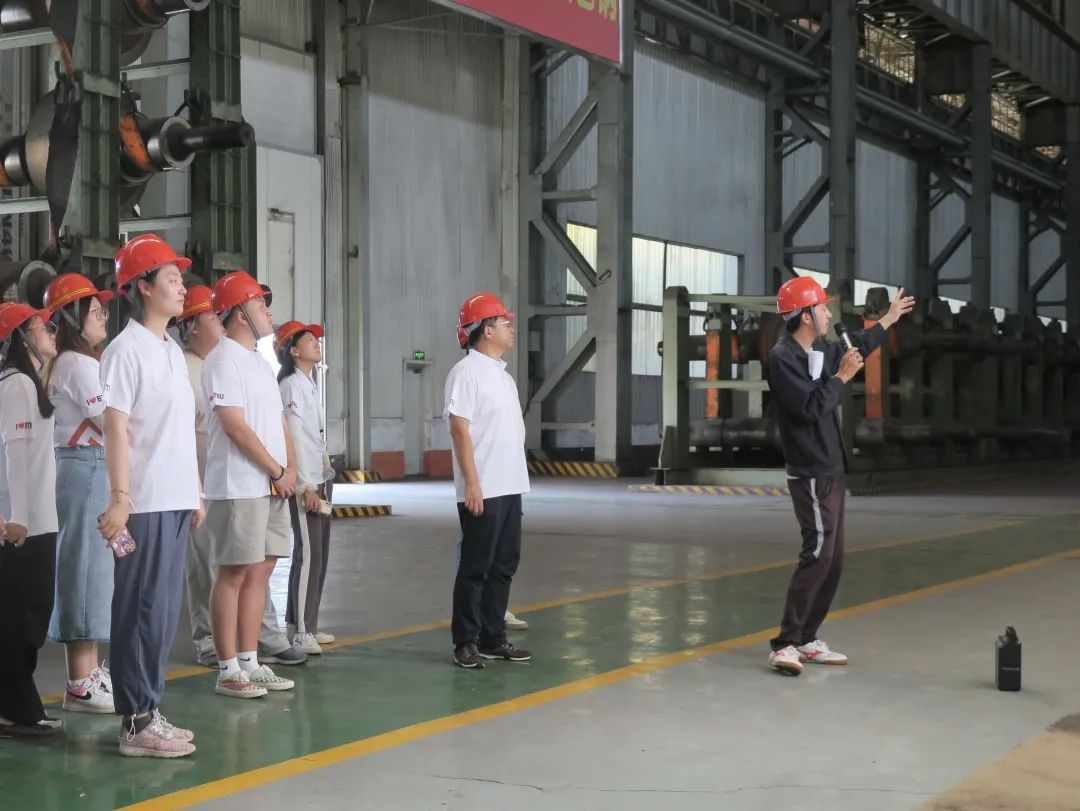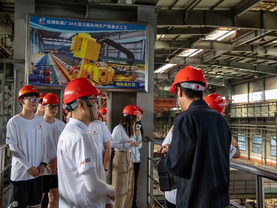 全体实践团成员在包钢轨梁厂车间首先观看了宣传片,感受“包钢钢轨,中国速度”的骄傲和自豪。工作人员向实践团成员们详细介绍了轨梁厂生产的重点工艺、精准参数、卓越品质、广泛用途等。在连轧流水线,钢梁在工作人员的操作下经过反复轧制生产成为成品,实践团成员被这种精益求精、一丝不苟的工匠精神深深地震撼。