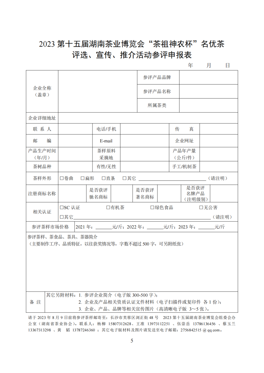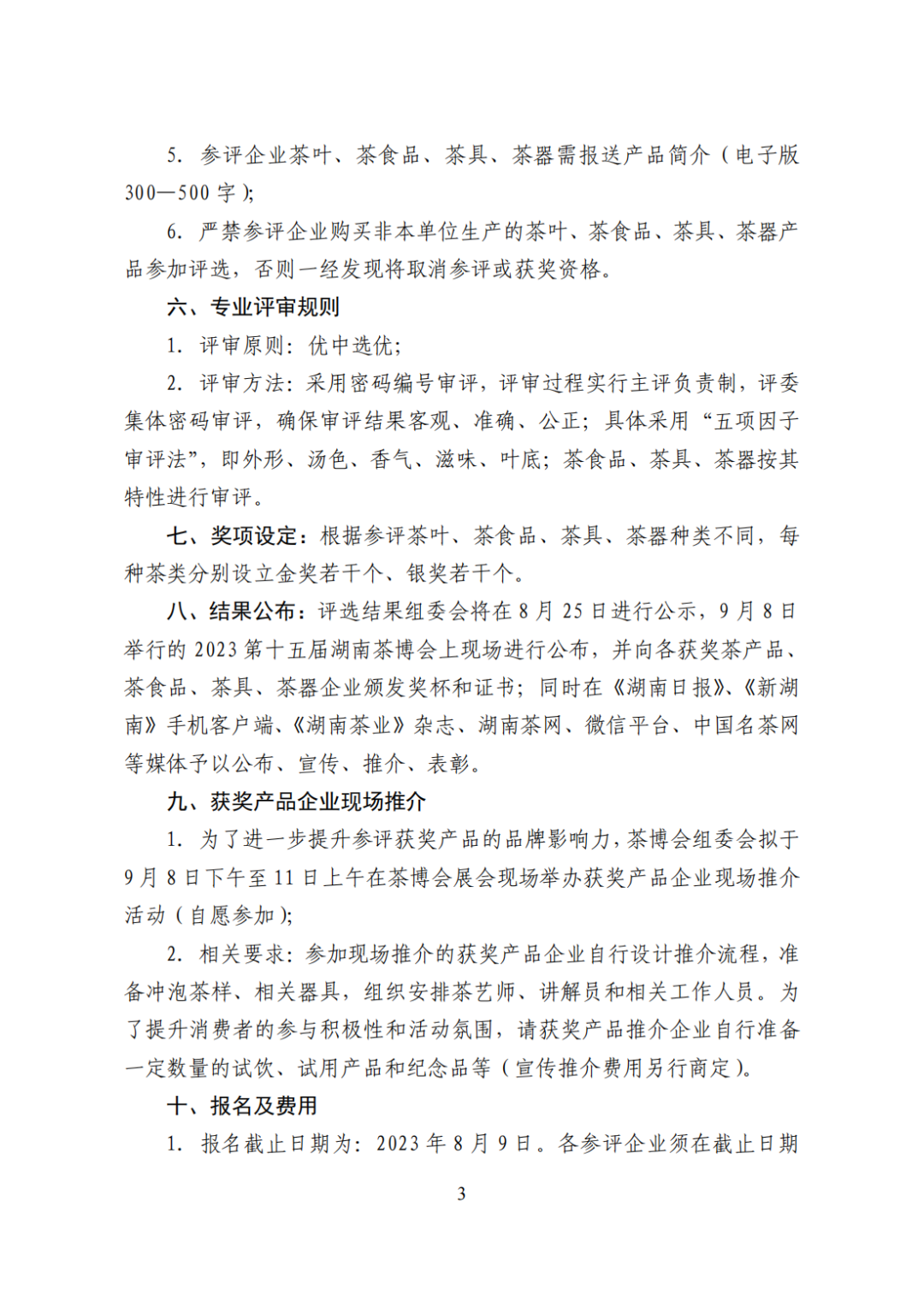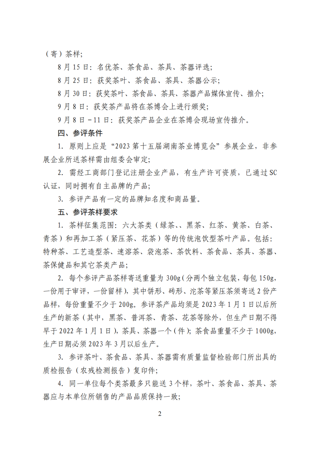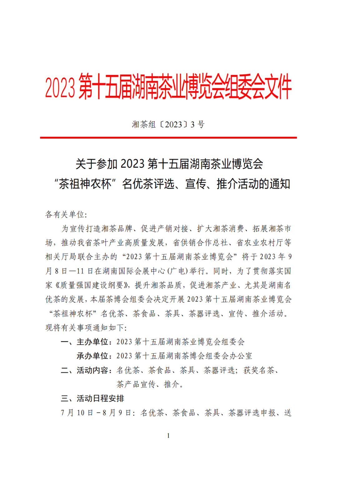 关于参加 2023 第十五届湖南茶业博览会“茶祖神农杯”名优茶评选、宣传、推介活动的通知