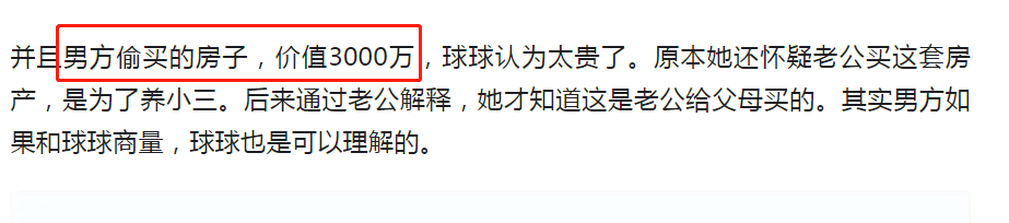 结婚的第2天,球球老公小陈就用老婆的钱在市中心买了两套房,花了将近3,000万买的房不仅没有通知老婆,这房子还准备给父母住。当时这件事被爆在网络上,还是球球亲自出面摆平,说都是一家人不用见外。