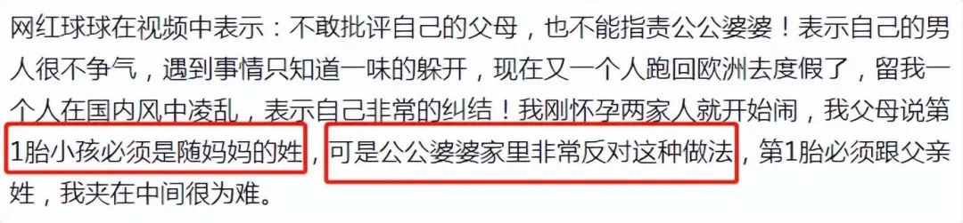 而且现在球球已经怀孕,老公小陈想必也是觉得已经拿捏住了球球,才敢如此肆无忌惮。之前球球怀孕的时候,还想商量老公第一胎宝宝跟自己姓赵,结果没想到刚提出来就遭到婆家人的反对。