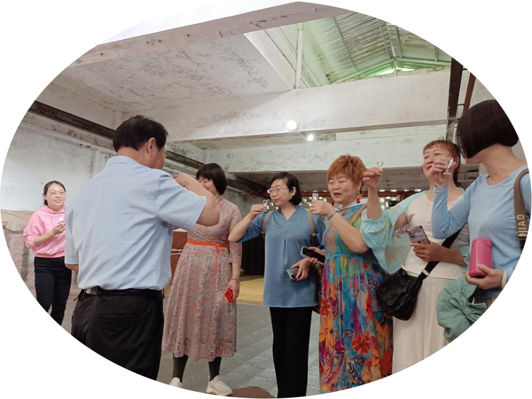 随后,我们一行来到山泉叮咚,鸟语花香,元末明初开始就以高粱、小麦等为原料,配以当地山泉水行古法窖藏之术,历经十几代人不断钻研、改良的直升“泉优酒业”。