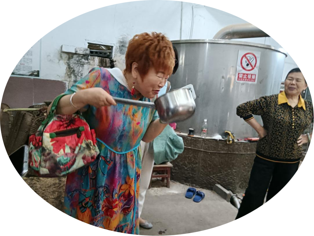 能把元末明初张家先祖张三峰传承的醪糟酒手艺发扬光大,为一方百姓带来口福,六百多年几代人的坚持实属不易,所以张盍宾先生的一首诗——“直升山上白雲泉,云自无心水自闲。从不奔流山下去,化作美酒在此间”,让我读到了他对自家祖传酒业的无比热爱。他的另一首诗——“我把岁月熬成汤,酸甜苦辣一杯装。云卷云舒随心过,一壶老酒伴夕阳”,一读,我就爱上了,回家途中情不自禁在心中默念起来,现在我都会背诵了耶。因为,我感觉其中不仅藏着一位七旬老人对事业的执着,更是藏着老人家“生活虐我千百遍,我对生活如初恋”那种骨子里的深情。