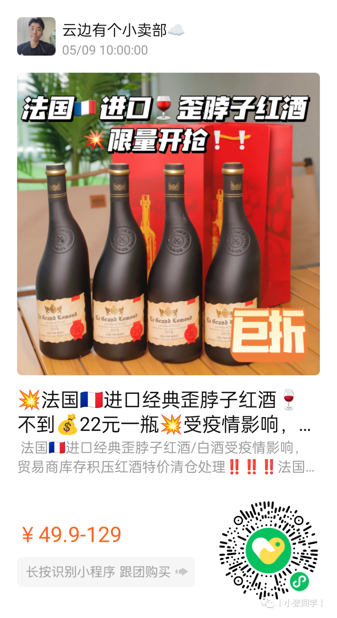 ?法国??进口经典歪脖子红酒? 不到?22元一瓶?受疫情影响,红酒清仓处理❗ ?官方价:1288¥/瓶 ?团购价:49.9¥/2瓶,?立省¥2526 ✅源自法国洛蒙德超级家族荣誉出品❗ ✅?50年以上老藤葡萄14度精酿❗ ✅经典的浮雕LOGO瓶身,颜值比肩拉菲~ ⚠️官方扫码价1288元/瓶❗保证正品,保税仓发货 ?发货时效:72小时RA00124