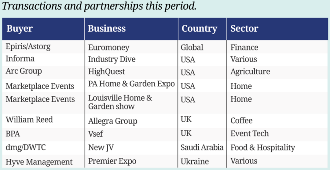 其他案例,还有翡翠会展集团购买了一家名为Bulletin的B2B在线批发市场;Arc并购HighQuest都是,如上图统计的部分案例。