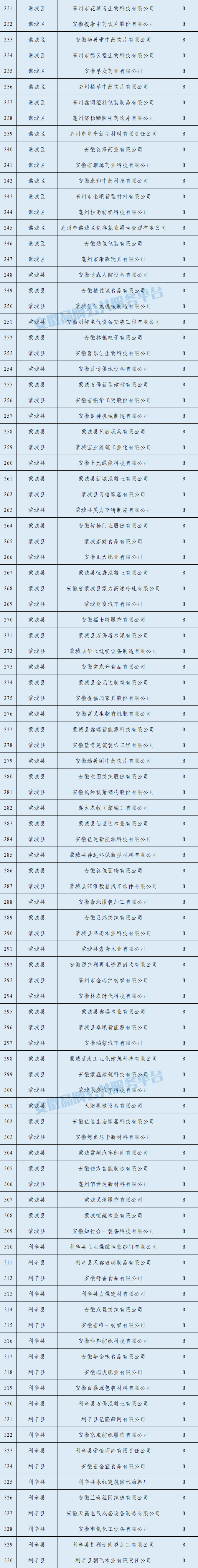 根据《亳州市人民政府办公室关于全面推广亩均效益评价工作的实施意见》(亳政办秘〔2021〕67号)规定,按照“市主导、县区实施”的原则,各县区、亳州高新区、亳芜现代产业园区组织开展了2022年度规模以上工业企业亩均效益评价工作,评价结果经市级统一公示,并报市政府同意,现予以公布。