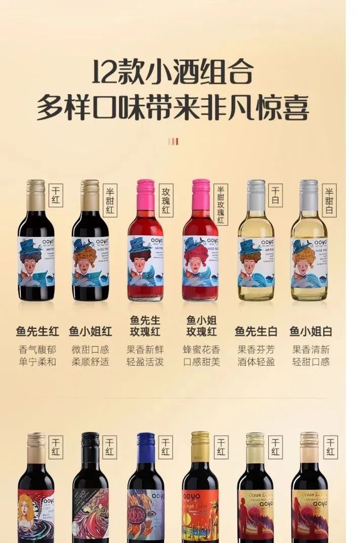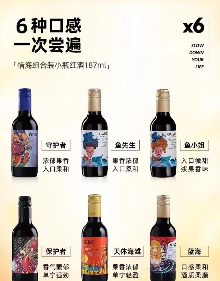 aoyo主打的是小瓶红酒,套装的话,每一瓶口味都不一样。