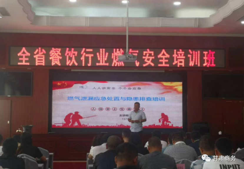 为深入贯彻习近平总书记对宁夏银川燃气爆炸事故重要指示批示精神,认真落实国家和省安委办工作要求,省商务厅于7月14日在兰州市举办了“甘肃省餐饮行业燃气安全培训班”,各市州、县区商务部门业务负责同志,省烹饪协会、省饭店协会、省陇菜协会和兰州牛肉拉面行业协会工作人员,共110多人参加了培训。厅服贸处负责人作开班动员。