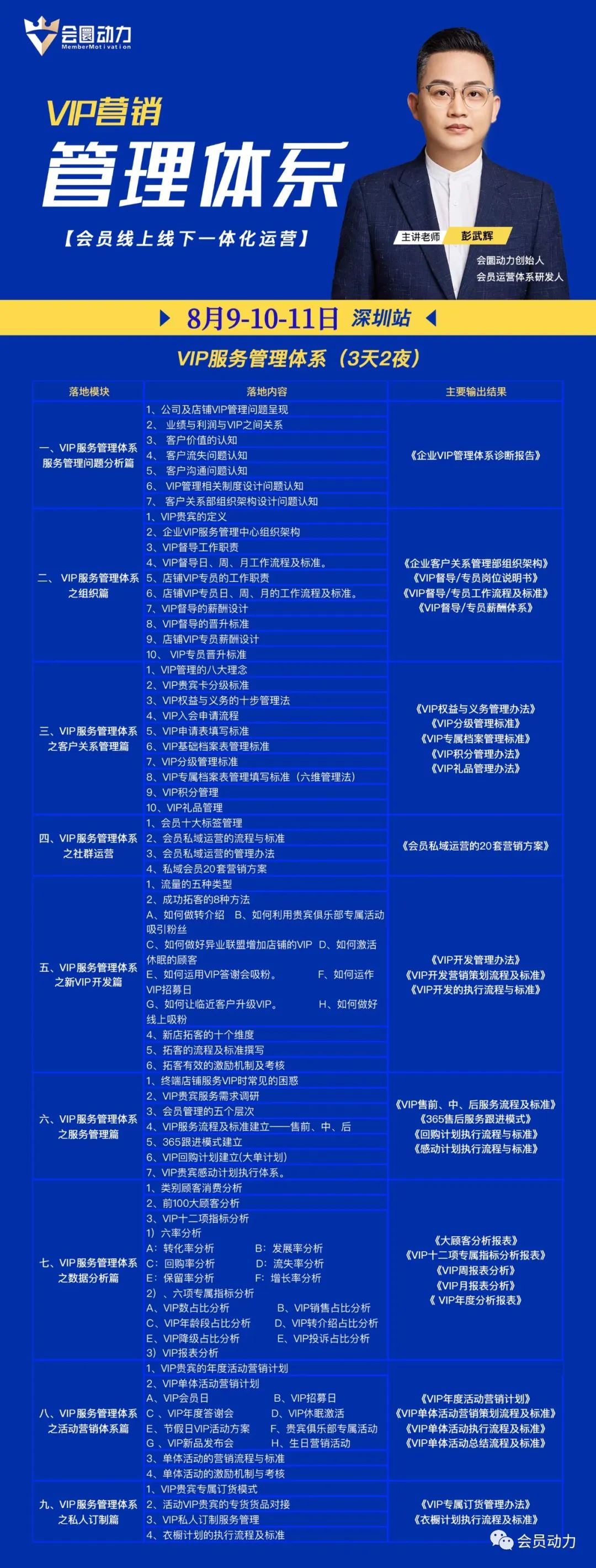 会圜动力是由中国资深会员管理专家彭武辉先生创立、现拥有国内最顶尖咨询导师团队、他们研究市场发展规律、洞察消费者的需求与消费趋势,并通过品牌运营管理和会员精细化管理,让企业实现企业利润最大化、会员价值最大化、员工动力最大化。