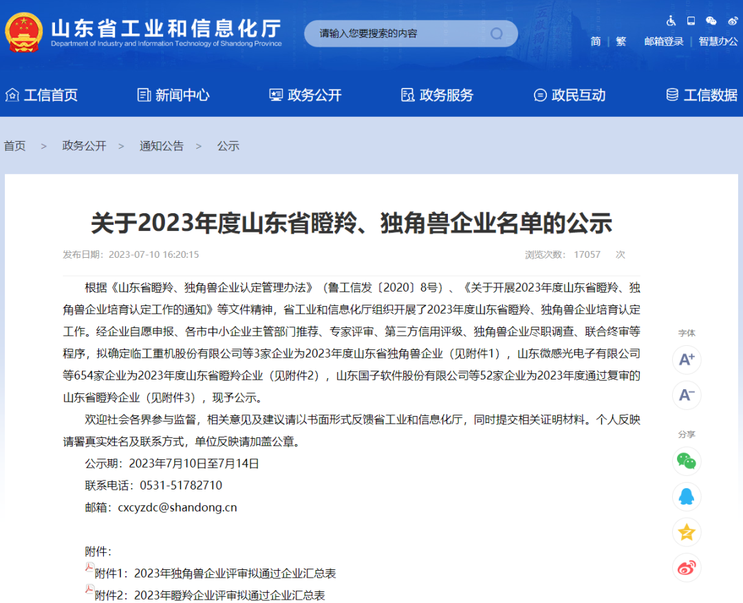 近日,山东省工业和信息化厅发布了《关于2023年度山东省瞪羚、独角兽企业名单的公示》,农综区种业企业优奈尔生物科技有限公司成功入选。