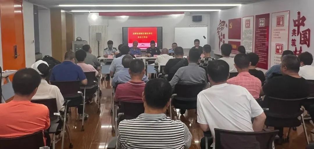 龙潭街道召开辖区餐饮单位安全工作会,观看安全警示教育宣传片。区消防救援支队、街道综合行政法队、市场监督管理所、安全生产检查队分别就餐饮企业消防安全责任落实、垃圾分类、门前三包、食品安全、日常安全管理等工作重点做了提示。餐饮公司代表就如何落实企业安全生产主体责任,做好日常安全管理进行交流发言。
