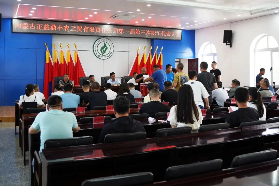 7月18日上午,内蒙古正益鼎丰农工贸有限责任公司召开第一届第三次职工代表大会。公司领导班子、49名职工代表和5名列席代表参加了会议。会议由陈强同志主持。